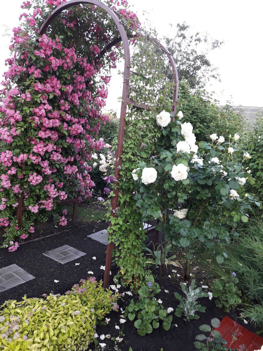 - Идеально: возле арки, забора, дома или беседки.